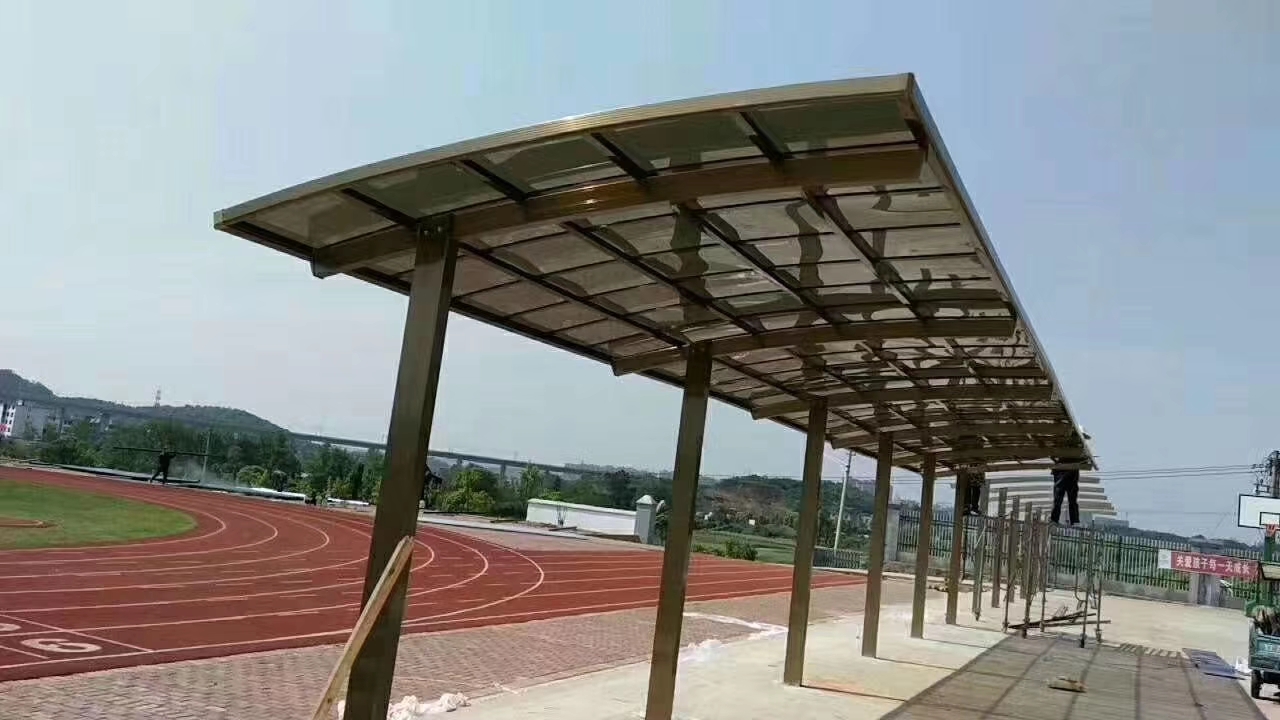 自行車車棚是20世紀(jì)中期發(fā)展起來(lái)的一種新型建筑結(jié)構(gòu)形式,鋁合金自行車棚是由骨架和頂棚構(gòu)建而成(骨架采用鈦鋁合金材質(zhì),頂棚采用聚碳酸紙板)高強(qiáng)度的鋁合金型材堅(jiān)固耐用,可以抗積雪,頑強(qiáng)抵抗臺(tái)風(fēng),頂棚采用進(jìn)口聚碳酸酯板,抗沖擊是玻璃的數(shù)百倍,有效防止高空墜物。自行車車棚是市民停放自行車的固定場(chǎng)所。