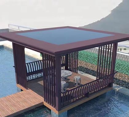 1、新中式鋁合金涼亭安裝簡單,施工便捷,不需要繁雜的施工工藝,節(jié)省安裝時(shí)間和費(fèi)用。