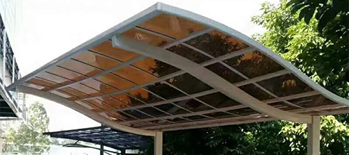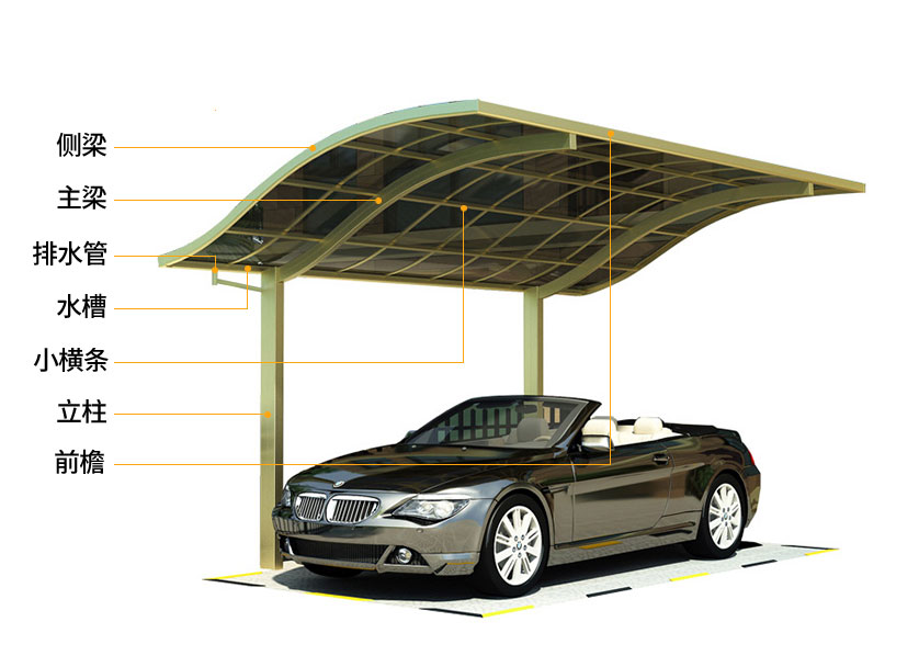 骨架材質:鈦鋁合金 頂棚材質:聚碳酸酯板 面積計算:按頂棚展開面 型材壁厚:1mm-4mm 板材厚度:2mm和3mm 尺寸:可定制 型材工藝:噴涂、電泳、轉印 框架顏色:白色、灰色、咖啡色、香檳色、木紋色 板材顏色:透明、茶色、淺灰色、深灰色、藍色 適用范圍:企業(yè)工廠、政府單位、別墅小區(qū) 款式選擇:單邊式車棚、合抱式車棚、斜拉式車棚、歐式S型車棚