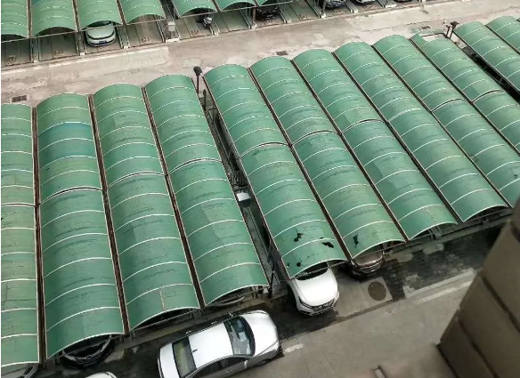 原始的塑料板綠棚,遮陽擋雨的功能有如茅草屋,老化破損厲害,高空墜物很容易穿透棚頂,傷到車身。尤其是,不抗風(fēng)!關(guān)鍵是,幾乎還不隔熱,三伏天車子停在下面打開依然像蒸籠。