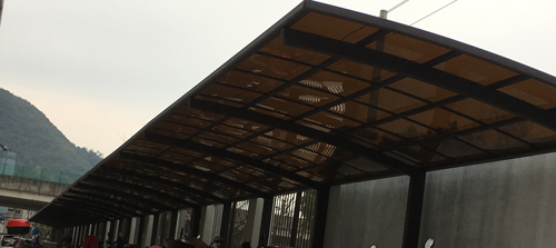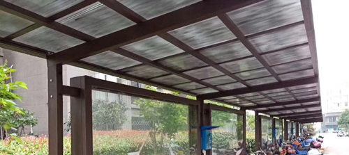 頂棚采用進(jìn)口聚碳酸酯板,抗沖擊比玻璃強(qiáng),有效防止高空墜物