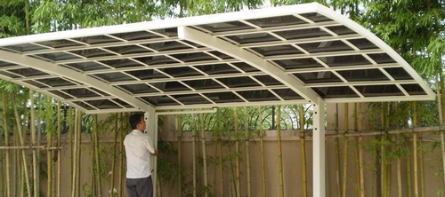 鋁合金停車棚采用靜電粉末噴涂工藝,耐腐蝕,不褪色,抗老化