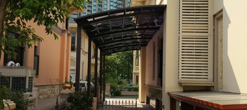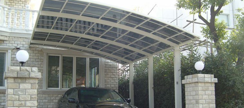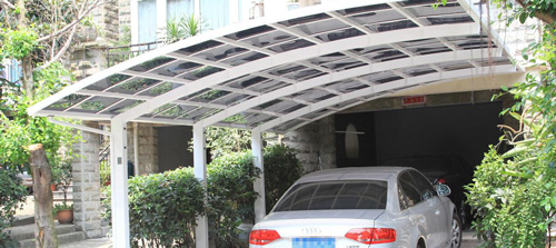 鋁合金停車棚融合歐式浪漫優(yōu)美弧度,簡(jiǎn)約時(shí)尚的設(shè)計(jì)風(fēng)格,帶水槽和排水管