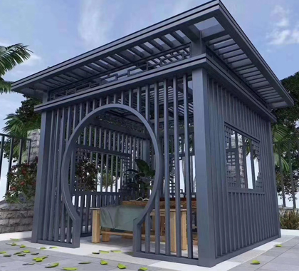 5、新中式鋁合涼亭防蟲(chóng)蛀、防白蟻,有效杜絕蟲(chóng)類(lèi)侵蝕隱患,使用壽命高達(dá)幾十年。