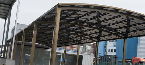 頂棚采用進(jìn)口聚碳酸酯板,抗沖擊是玻璃的數(shù)百倍,有效防止高空墜物