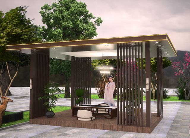 6、新中式鋁合涼亭防火阻燃,徹底解決木質(zhì)類產(chǎn)品容易燃燒,存在安全隱患的難題。