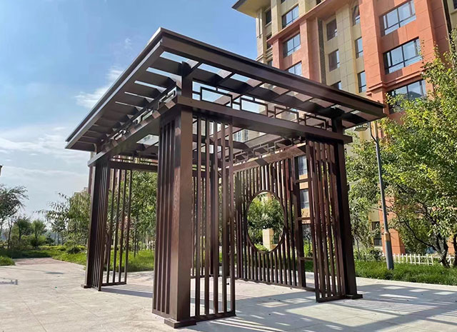 7、新中式鋁合涼亭顏色豐富,可供選擇的顏色眾多。既具有天然木質(zhì)感和木質(zhì)紋理,又可以根據(jù)自己的個(gè)性來(lái)定制需要的顏色。