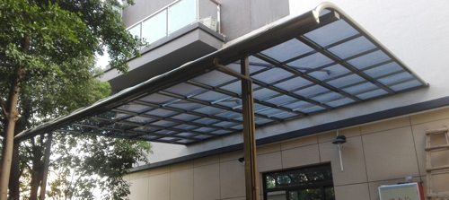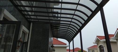 頂棚采用進(jìn)口聚碳酸酯板,抗沖擊是玻璃的數(shù)百倍,有效防止高空墜物
